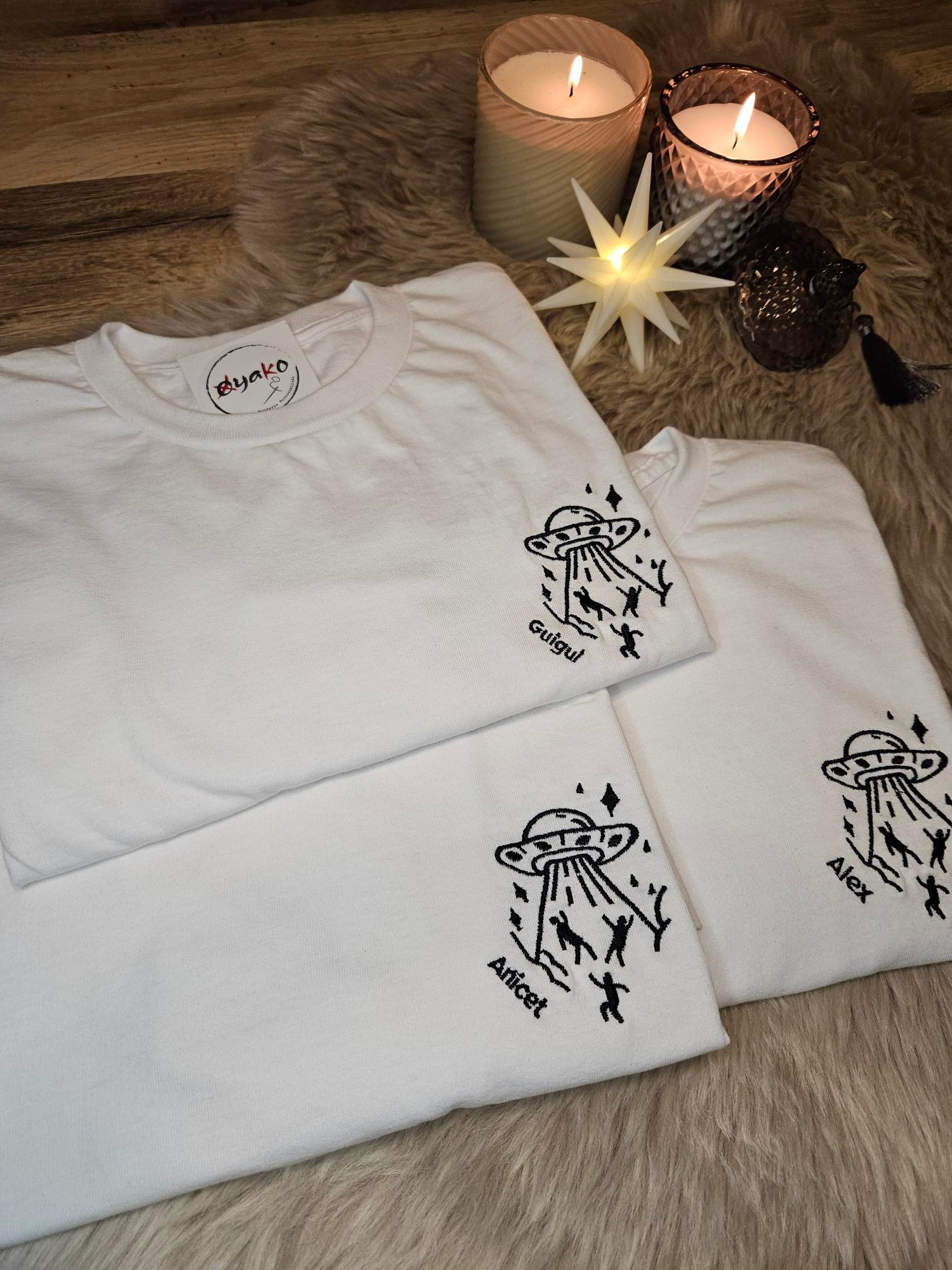 Des broderies simples aux créations en duo pour les couples ou les amis, jusqu'à l'assemblage habile de multiples motifs sur un même vêtement, notre équipe experte est prête à relever tous les défis. Chez Broderie Oyako, il n'y a pas de limites à ta créativité.